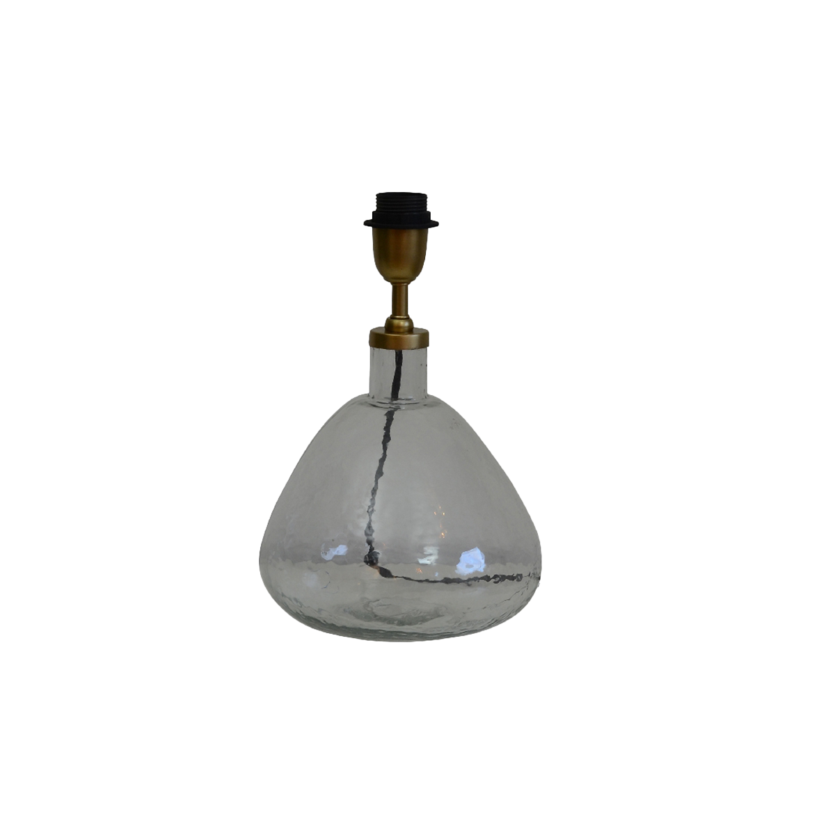 En transparent lampfot med en elegant och luftig design i glas. Den genomskinliga ytan ger ett lätt och minimalistiskt intryck. Formen är enkel och stilren vilket förstärker dess moderna och diskreta estetik.