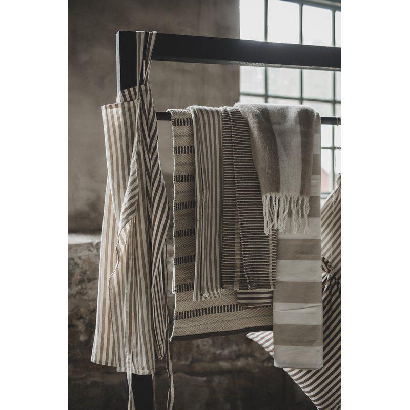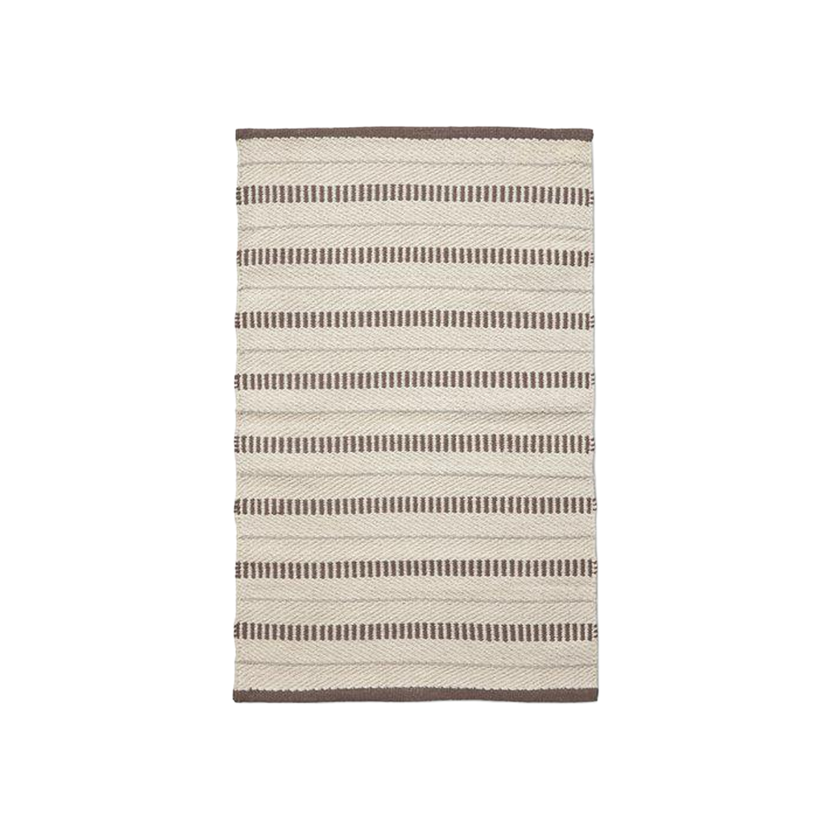 Nissan är en matta med klassiskt randigt mönster i beige och vitt som skapar ett fräscht och harmoniskt uttryck. De vävda ränderna ger liv och struktur, samtidigt som den tidlösa designen gör att mattan smälter in lika fint i hallen som i köket eller vardagsrummet. Tillverkad i bomull är Nissan både praktisk och vacker – en matta som kombinerar funktion med stil.