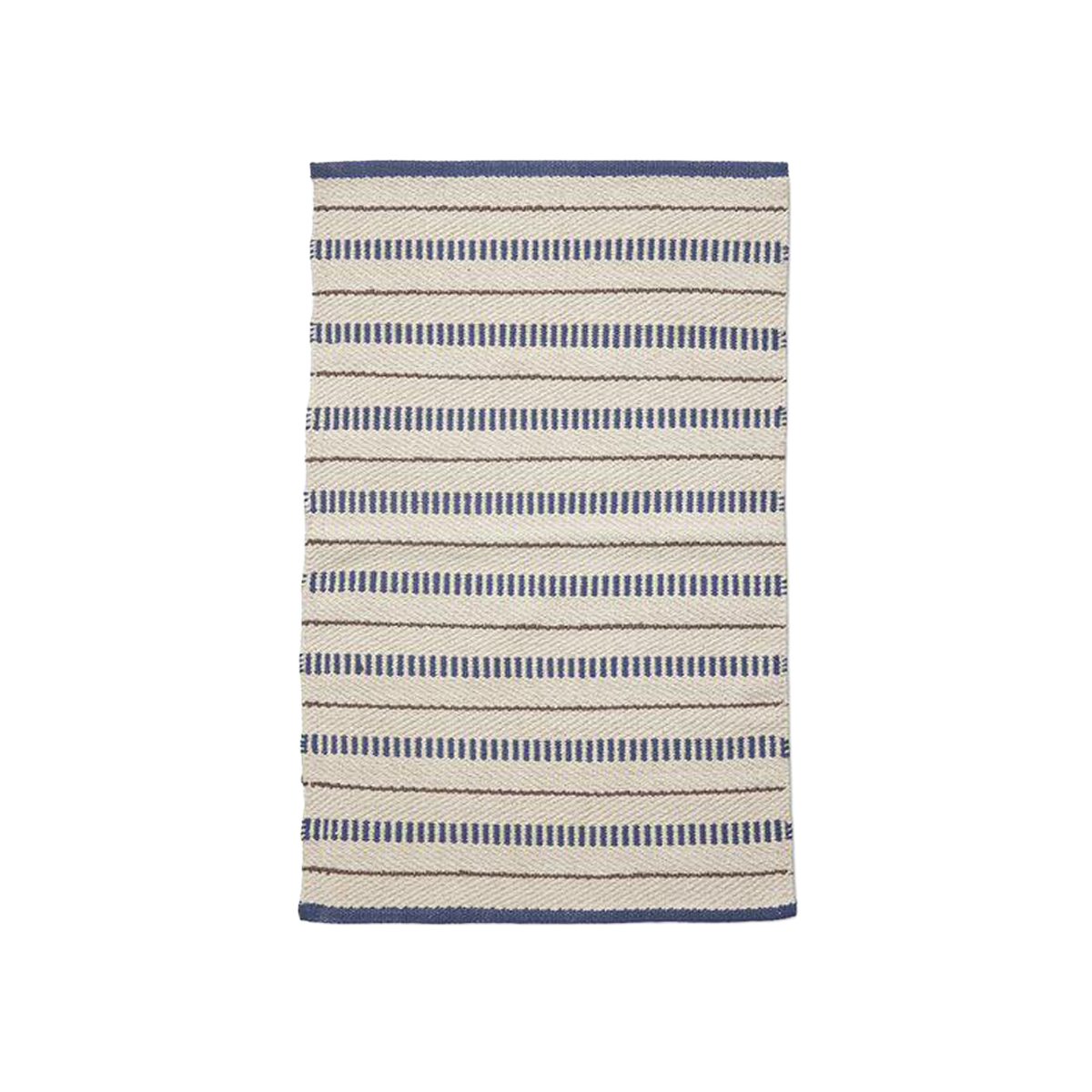 Nissan är en matta med klassiskt randigt mönster i blått och vitt som skapar ett fräscht och harmoniskt uttryck. De vävda ränderna ger liv och struktur, samtidigt som den tidlösa designen gör att mattan smälter in lika fint i hallen som i köket eller vardagsrummet. Tillverkad i bomull är Nissan både praktisk och vacker – en matta som kombinerar funktion med stil.