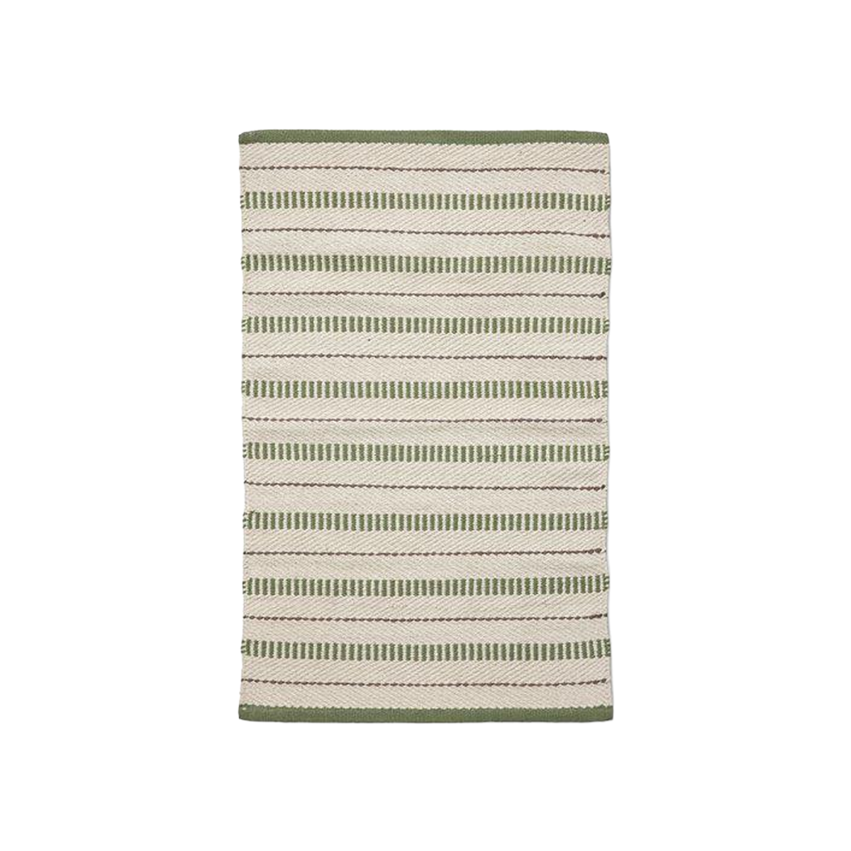 Nissan är en matta med klassiskt randigt mönster i grönt och vitt som skapar ett fräscht och harmoniskt uttryck. De vävda ränderna ger liv och struktur, samtidigt som den tidlösa designen gör att mattan smälter in lika fint i hallen som i köket eller vardagsrummet. Tillverkad i bomull är Nissan både praktisk och vacker – en matta som kombinerar funktion med stil.