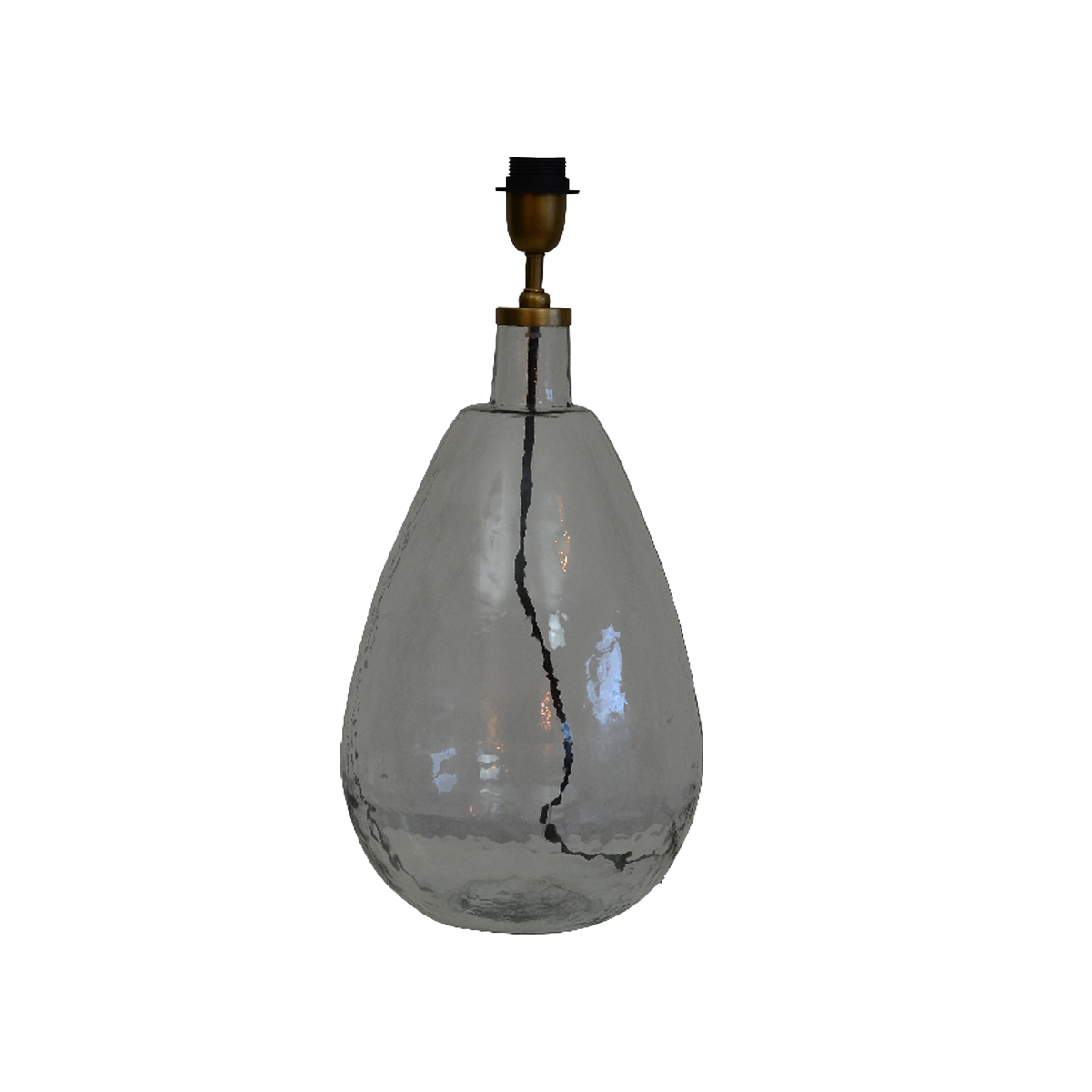 En transparent lampfot med en elegant och luftig design i glas. Den genomskinliga ytan ger ett lätt och minimalistiskt intryck. Formen är enkel och stilren vilket förstärker dess moderna och diskreta estetik.