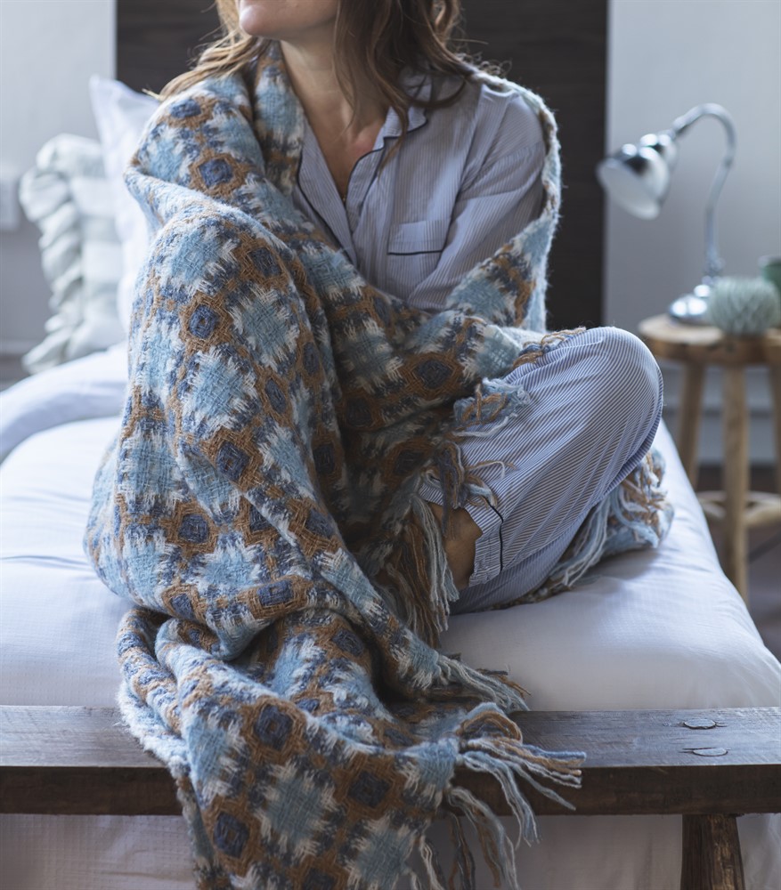 Dekorera ditt hem med denna charmiga retropläd i sköna färger i en ullmix. Finns också i två färger.