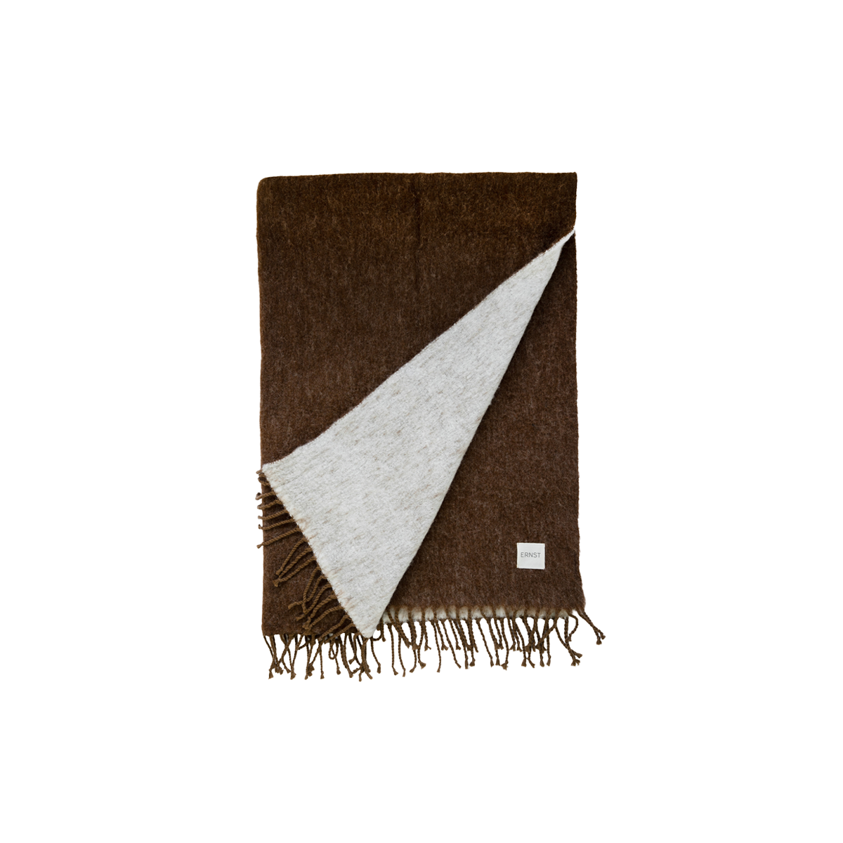 ERNST pläd som omsluter dig med lugn och värme, kola på ena sidan och natur på andra. Fransarna dansar mjukt i kanten, och oavsett om du sveper den om dig en kylig kväll eller låter den vila på soffan, tillför den en känsla av ro och harmoni i rummet.