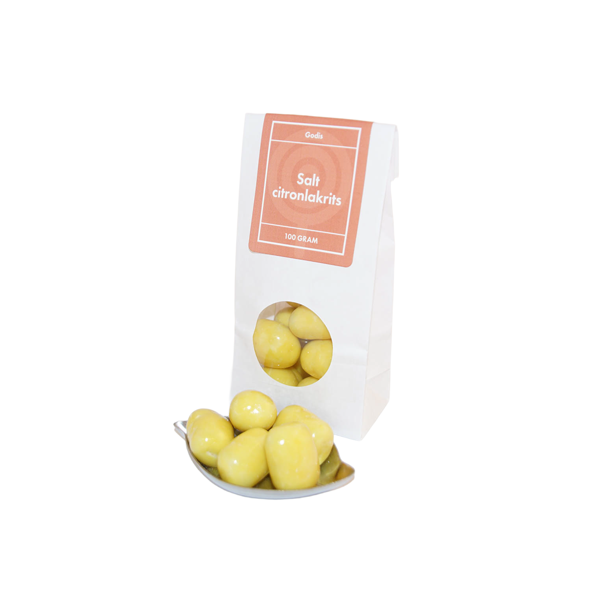 Ingredienser: Saltlakrits: (socker, melass, VETEMJÖL, glukossirap, lakritsextrakt, arom (ammoniumklorid), vegetabilisk kokosfett, stabilisator (sorbitol), modifierad potatisstärkelse, färgämne (vegetabiliskt kol), naturlig anis arom), socker, kakaosmör, HELMJÖLKSPULVER, koncentrerad citronjuice, VASSLEPULVER, LAKTOS, emulgeringsmedel (SOJALECITIN), naturlig citron arom,växtfärgskoncentrat (safflor), naturlig vanilj arom, ytbehandlingsmedel E904, glukossirap, modifierad tapiokastärkelse, vegetabiliska oljor (kokos, raps) i varierande proportion.