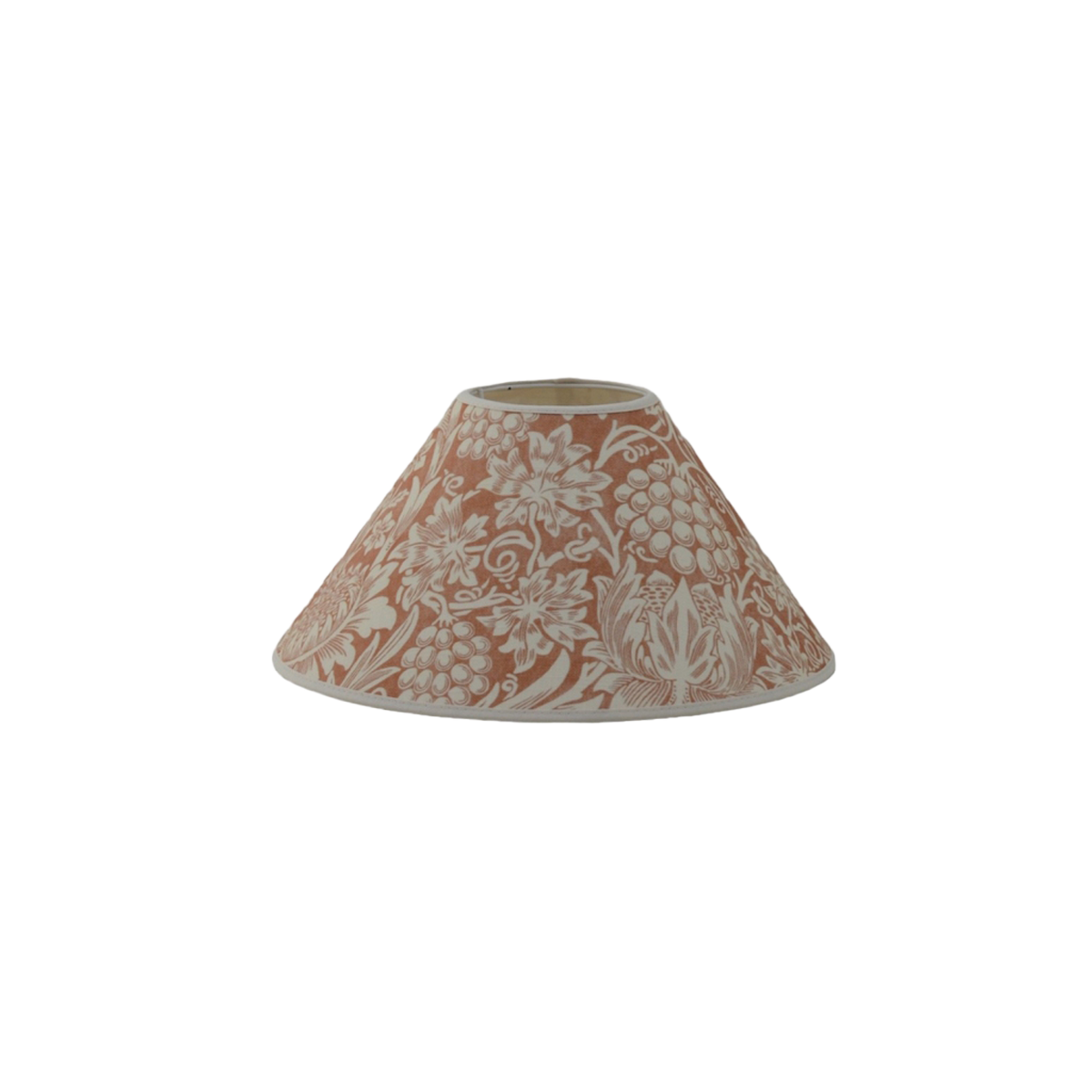 En fin blommönstrad lampskärm med livliga blommor mot en färgad bakgrund. Detaljerade blad och blomformer skapar ett harmoniskt och lekfullt mönster.