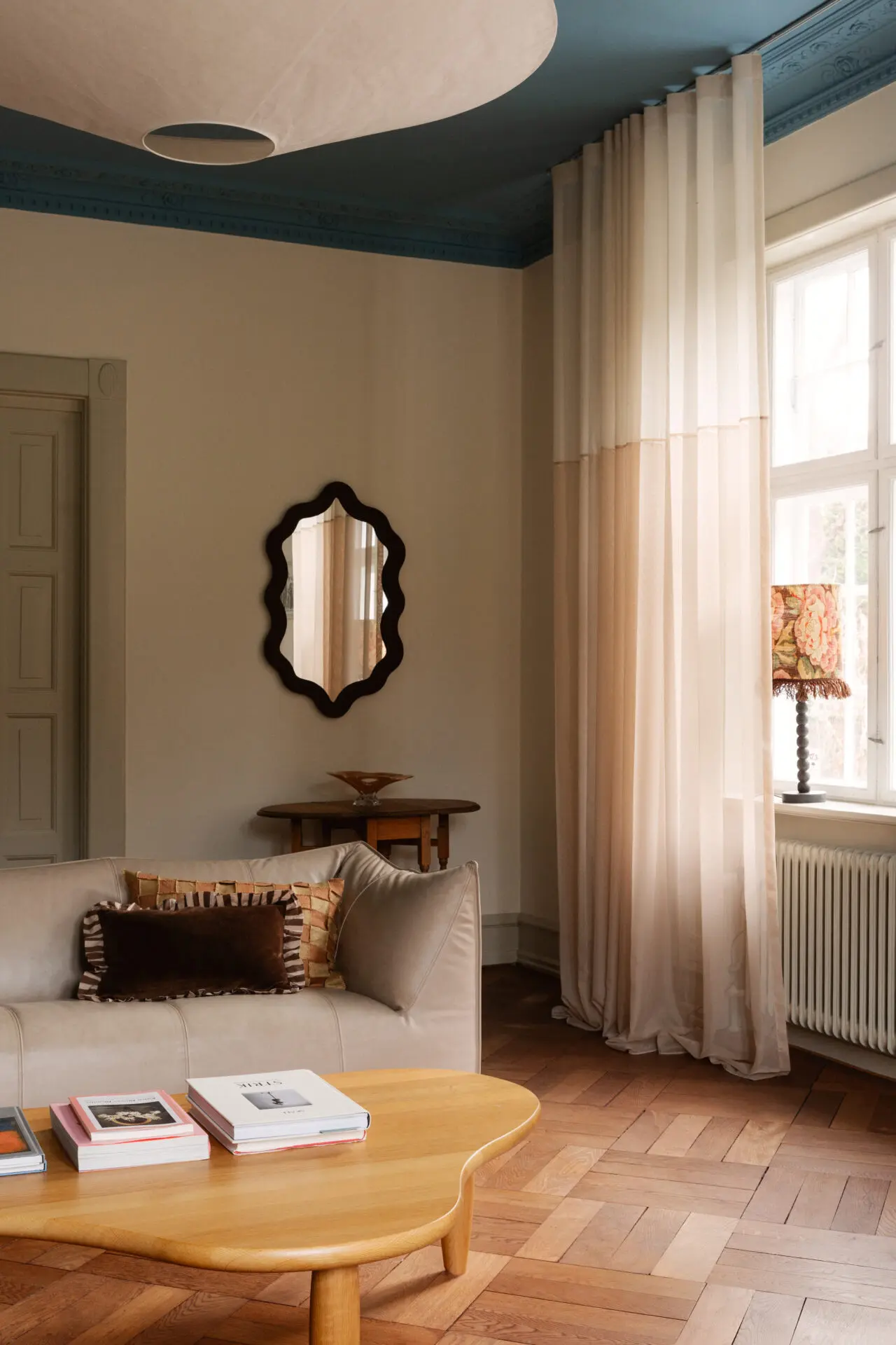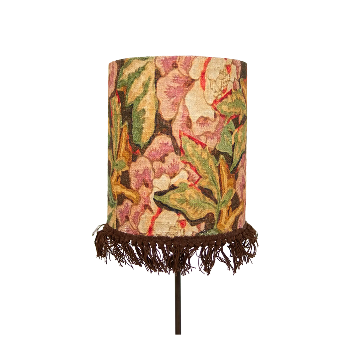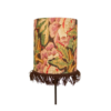 Lampskärm med gammaldags, blommigt motiv och dekorativa fransar. Ger ett varmt och välkomnande intryck till ett rum.