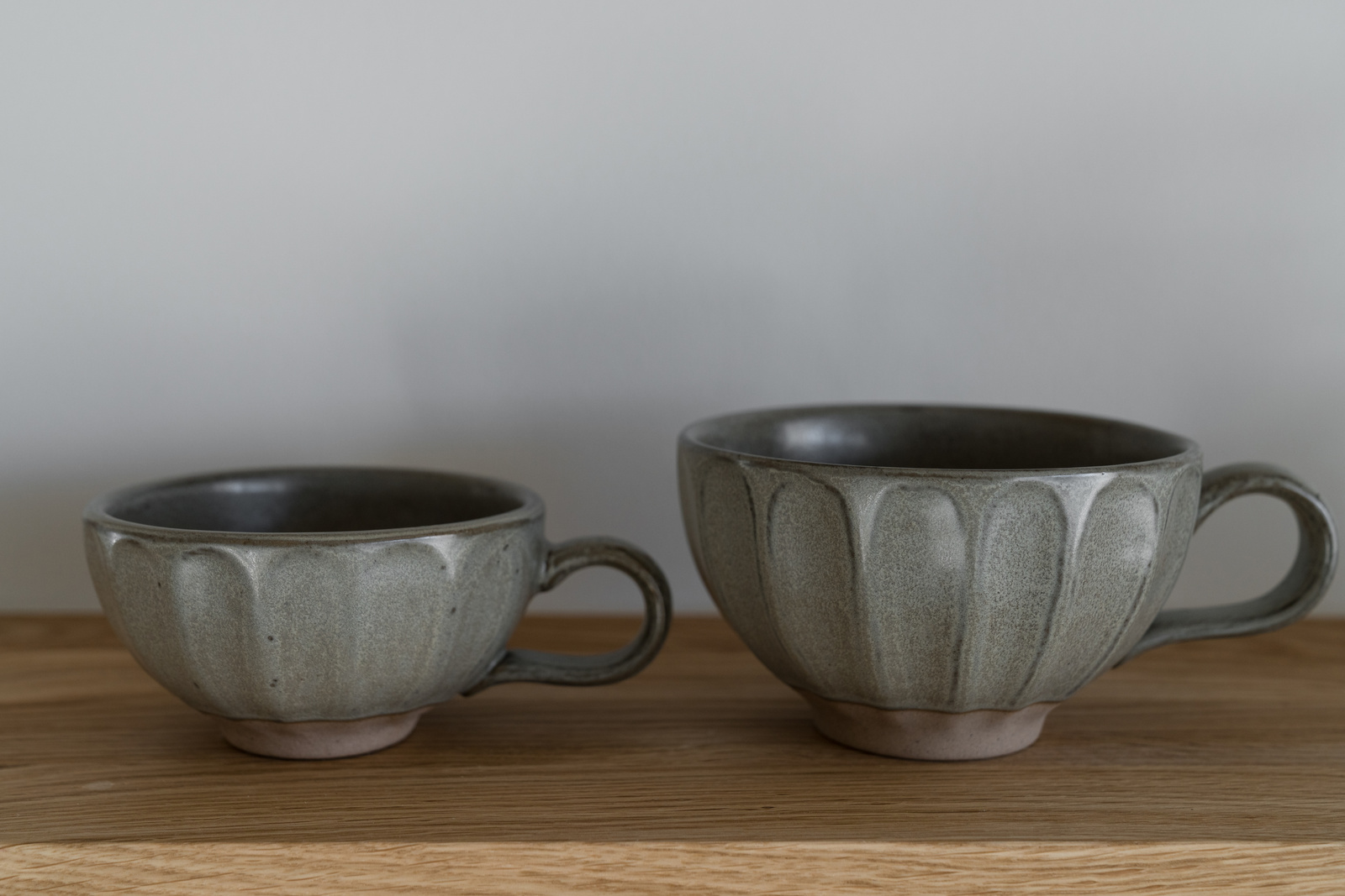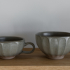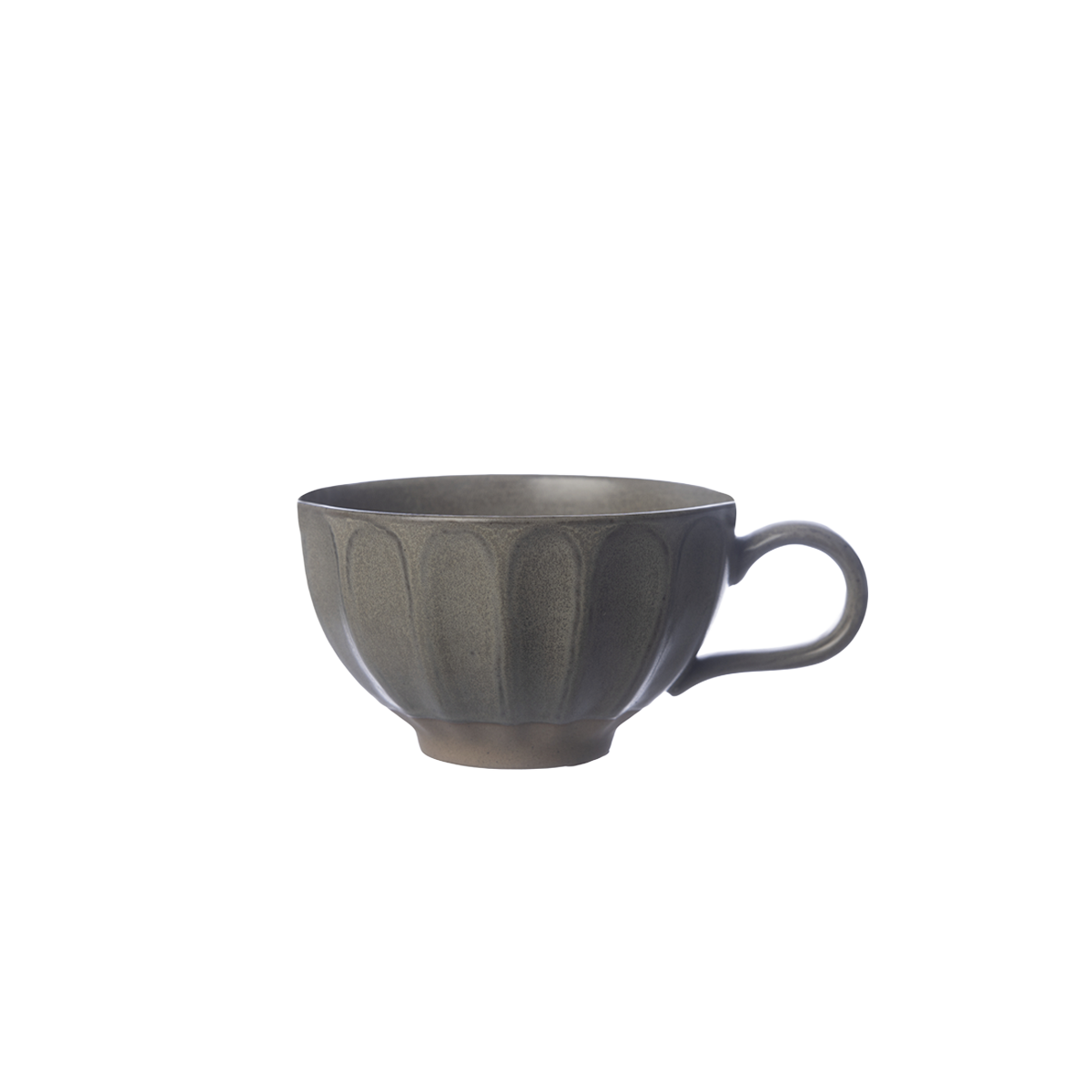 En tekopp i mjukt formad keramik med naturlig glasyr.