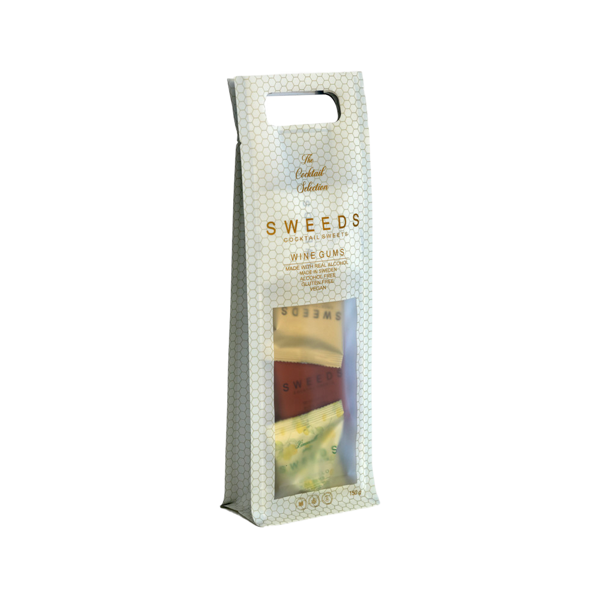 Svenska vingummin från SWEEDS gjorda på riktig alkohol och vin från små svenska vingårdar. Den perfekta kombinationen för dig som älskar sötsaker och alkohol. SWEEDS vingummin är alkoholfria, glutenfria och veganska. The Cocktail Selection innehåller en mix av 10 påsar (15 grams vardera) av Sweeds smaker. Perfekt som gå- bort present!