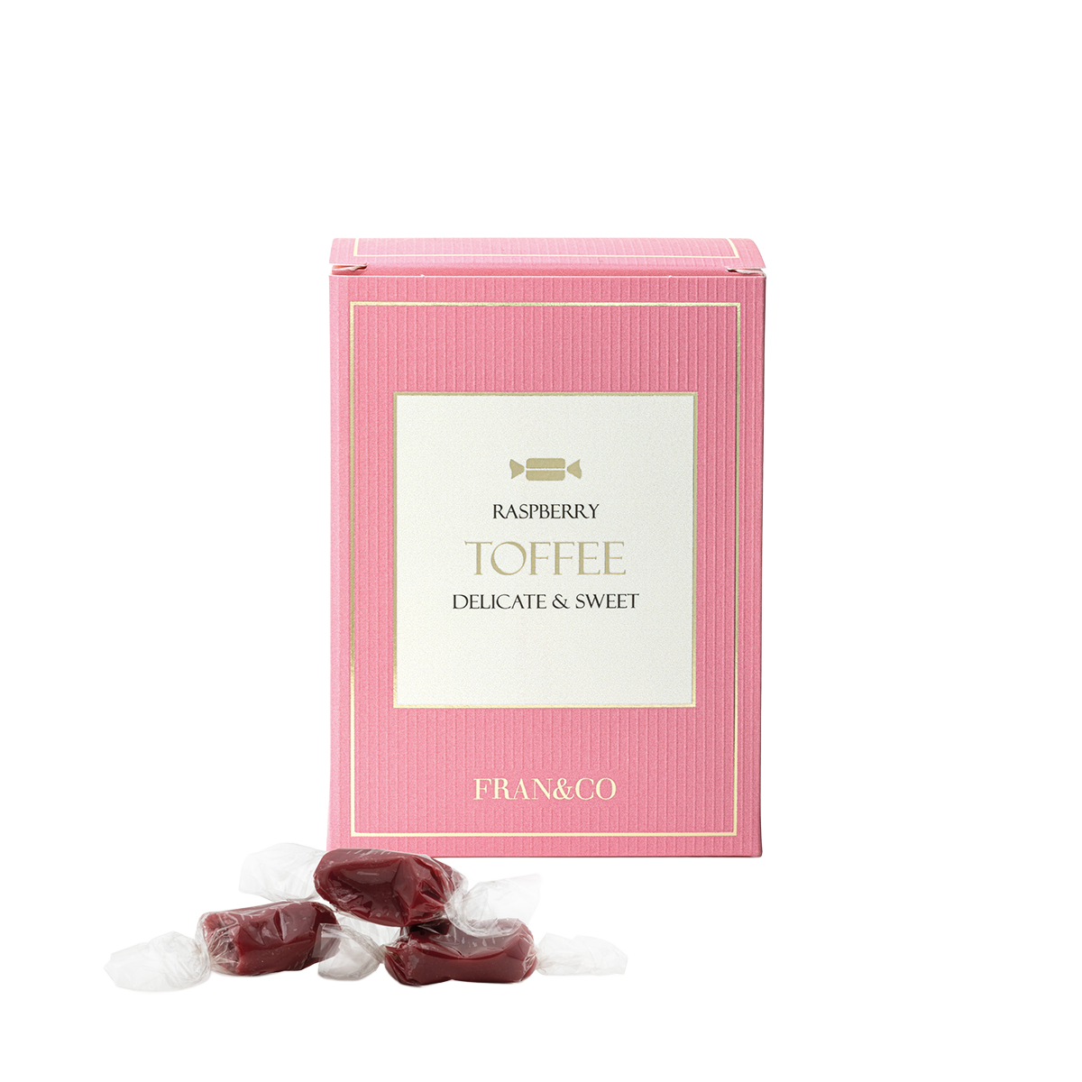 Kola med hallonsmak. Ingredienser: Glukossirap, sockrad kondenserad mjölk (mjölk, socker), socker, vegetabiliskt fett (palm*, shea), salt, aromämnen, surhetsreglerande medel (E330), färgämne (E120). Kan innehålla spår av mandel. *RSPO-Certifierad palmolja.