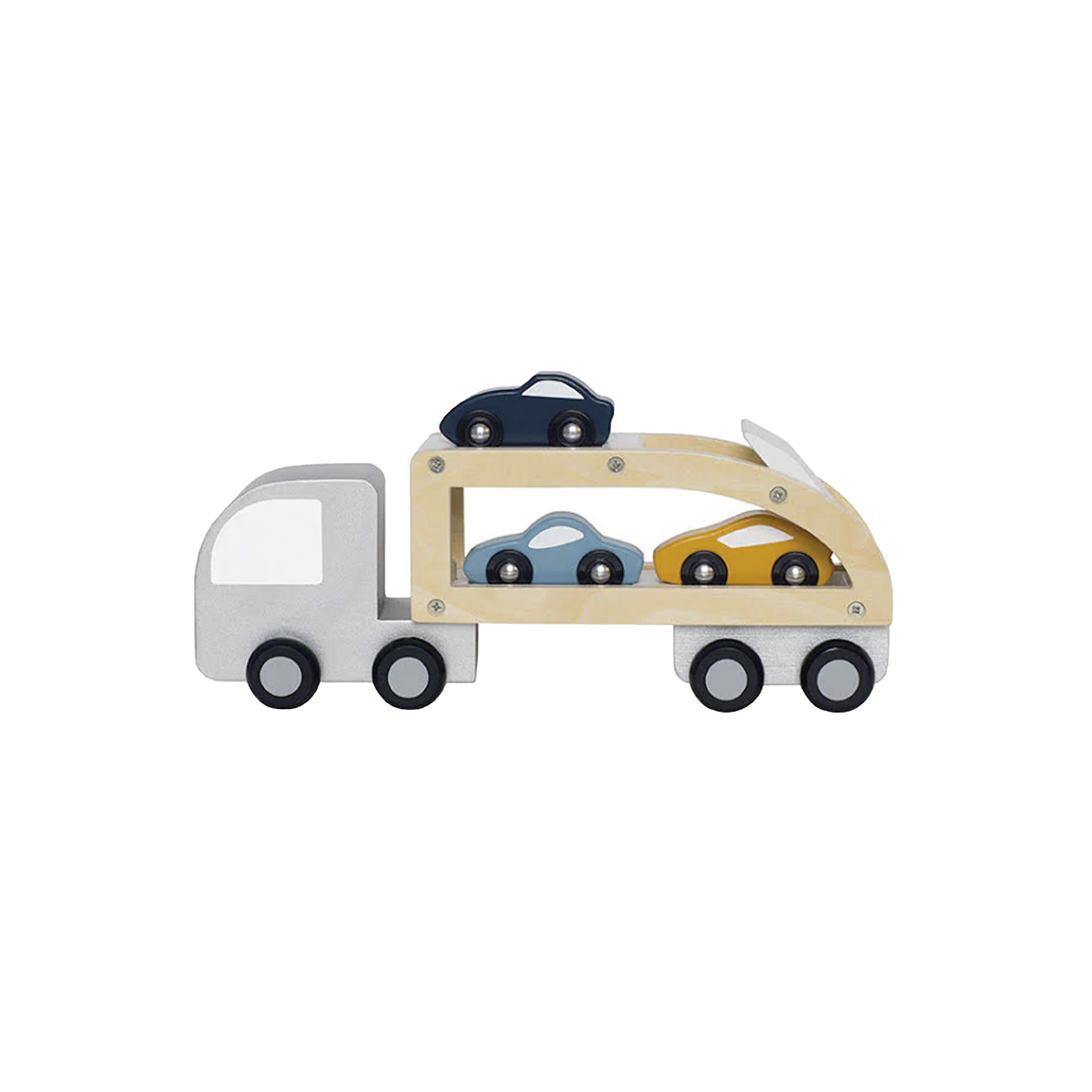 Innehåller 3 bilar Avtagbart släp för extra lekvariation Uppmuntrar till fantasifull och kreativ lek Perfekt present för barn som älskar bilar Material: Trä, plast, metall