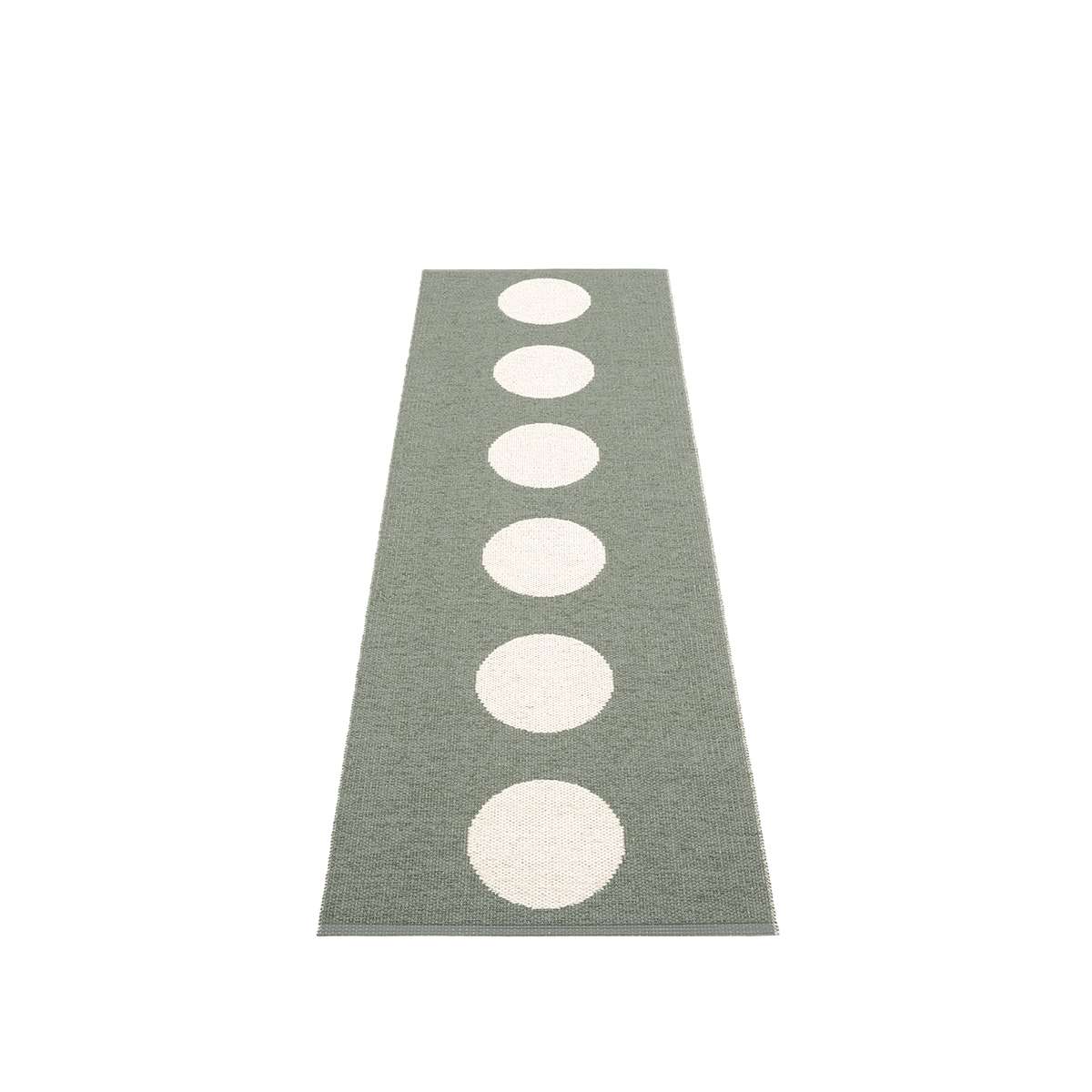 Allt började med VERA! Sedan sin debut har VERA uppnått enastående framgång och sålt över 150 000 mattor över hela världen. Dess ikoniska design fortsätter att skänka glädje och karaktär till otaliga hem runt om i världen. VERA förmår väcka en känsla av lekfullhet och samtida charm, vilket gör den till en älskad min punkt i hemmet. När VERA lanserades i augusti 2002 introducerade den ett banbrytande designkoncept i mattvärlden. Med sin stora runda cirkel och unika två-i-en-koncept fångade VERA publiken med sitt innovativa tillvägagångssätt för färgsättning. Genom att helt enkelt vända på mattan kunde man förändra utseendet på mattan och tillföra en lekfull twist till det samtida mönstret. Med övertygelse om att detta var ett mönster som skulle skap en egen trend och stå emot tidens tand släppte Pappelina VERA i åtta fängslande färger: Svart, Vit, Röd, Grön, Blå, Nougat, Orange och Grå. Bland dessa ursprungliga nyanser förblir Svart, Röd och Orange populära val än idag, vilket är ett bevis på deras tidlösa attraktionskraft. Som en ikonisk och bästsäljande design symboliserar VERA Pappelinas engagemang för att driva gränserna för mattdesign samtidigt som den behåller en tidlös attraktionskraft. Mattan är hygienisk, absorberar ej vätska, samt dammar inte. Idealisk för personer med allergier. Pappelina plastmatta VERA Army Vanilla.
