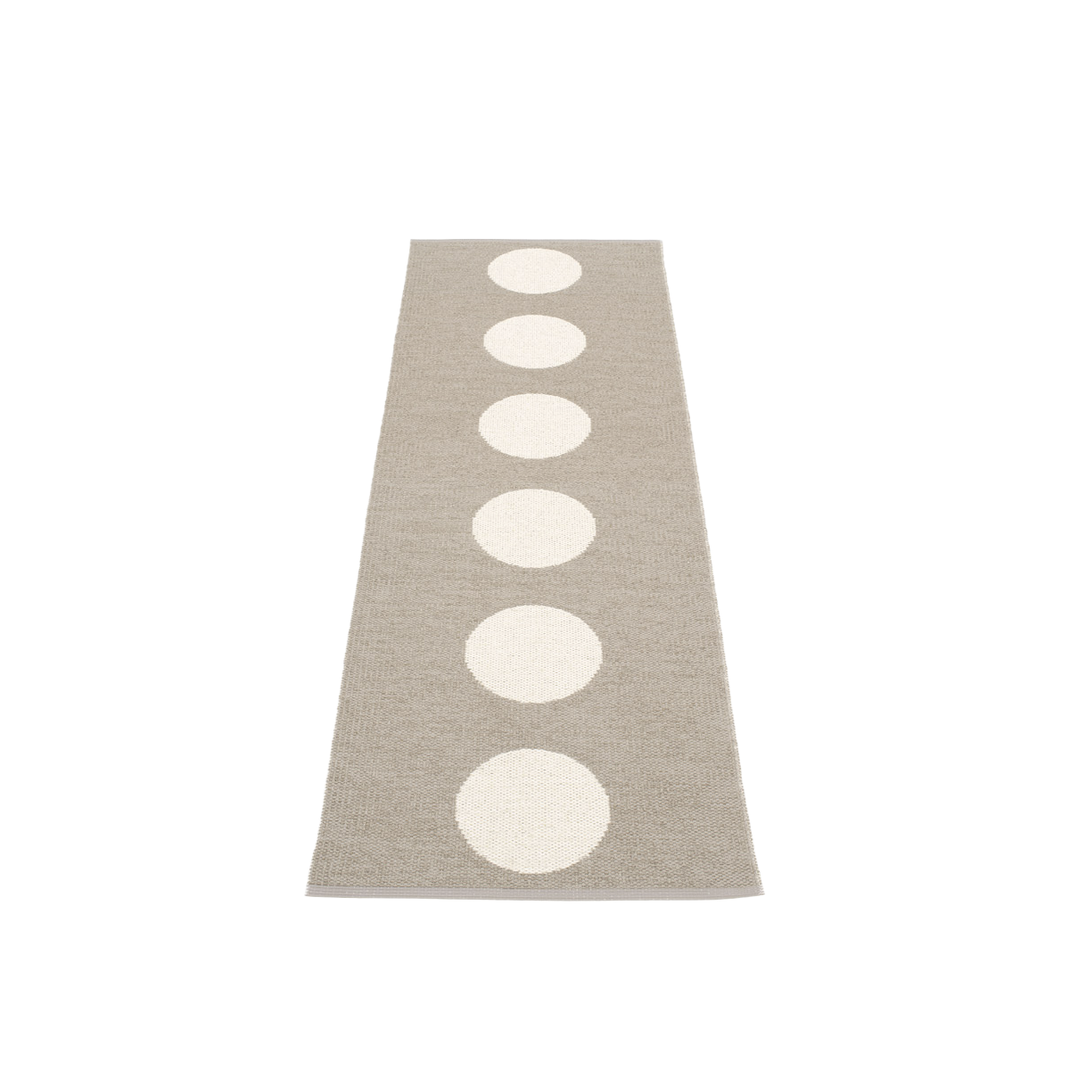 Allt började med VERA! Sedan sin debut har VERA uppnått enastående framgång och sålt över 150 000 mattor över hela världen. Dess ikoniska design fortsätter att skänka glädje och karaktär till otaliga hem runt om i världen. VERA förmår väcka en känsla av lekfullhet och samtida charm, vilket gör den till en älskad min punkt i hemmet. När VERA lanserades i augusti 2002 introducerade den ett banbrytande designkoncept i mattvärlden. Med sin stora runda cirkel och unika två-i-en-koncept fångade VERA publiken med sitt innovativa tillvägagångssätt för färgsättning. Genom att helt enkelt vända på mattan kunde man förändra utseendet på mattan och tillföra en lekfull twist till det samtida mönstret. Med övertygelse om att detta var ett mönster som skulle skap en egen trend och stå emot tidens tand släppte Pappelina VERA i åtta fängslande färger: Svart, Vit, Röd, Grön, Blå, Nougat, Orange och Grå. Bland dessa ursprungliga nyanser förblir Svart, Röd och Orange populära val än idag, vilket är ett bevis på deras tidlösa attraktionskraft. Som en ikonisk och bästsäljande design symboliserar VERA Pappelinas engagemang för att driva gränserna för mattdesign samtidigt som den behåller en tidlös attraktionskraft. Enkel att sköta och tvätta genom att endast använda vatten. Tål maskintvätt. Pappelina plastmatta VERA Mud Vanilla