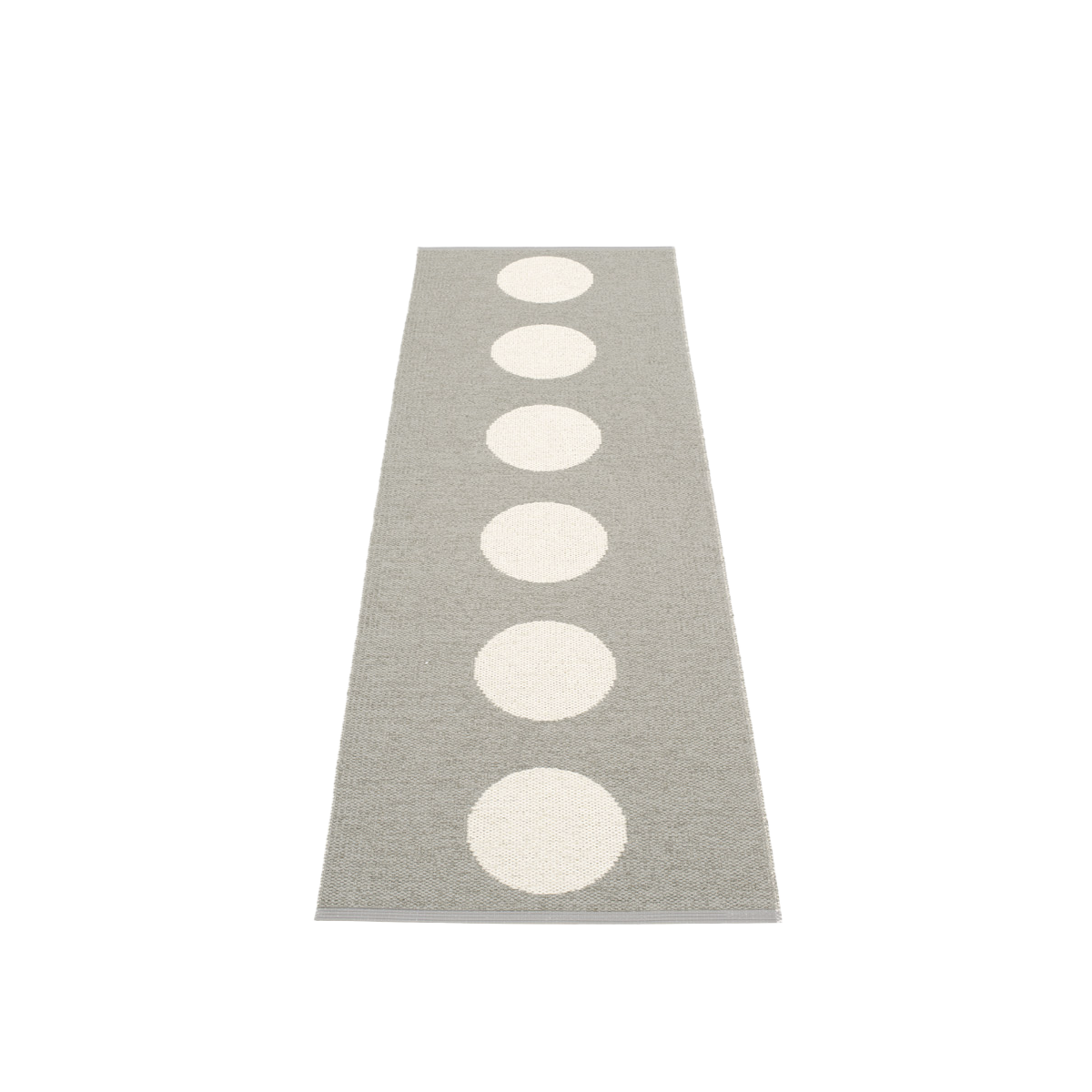 Allt började med VERA! Sedan sin debut har VERA uppnått enastående framgång och sålt över 150 000 mattor över hela världen. Dess ikoniska design fortsätter att skänka glädje och karaktär till otaliga hem runt om i världen. VERA förmår väcka en känsla av lekfullhet och samtida charm, vilket gör den till en älskad min punkt i hemmet. När VERA lanserades i augusti 2002 introducerade den ett banbrytande designkoncept i mattvärlden. Med sin stora runda cirkel och unika två-i-en-koncept fångade VERA publiken med sitt innovativa tillvägagångssätt för färgsättning. Genom att helt enkelt vända på mattan kunde man förändra utseendet på mattan och tillföra en lekfull twist till det samtida mönstret. Med övertygelse om att detta var ett mönster som skulle skap en egen trend och stå emot tidens tand släppte Pappelina VERA i åtta fängslande färger: Svart, Vit, Röd, Grön, Blå, Nougat, Orange och Grå. Bland dessa ursprungliga nyanser förblir Svart, Röd och Orange populära val än idag, vilket är ett bevis på deras tidlösa attraktionskraft. Som en ikonisk och bästsäljande design symboliserar VERA Pappelinas engagemang för att driva gränserna för mattdesign samtidigt som den behåller en tidlös attraktionskraft. Mattan är hygienisk, absorberar ej vätska, samt dammar inte. Idealisk för personer med allergier. Pappelina plastmatta VERA Warm Grey Vanilla