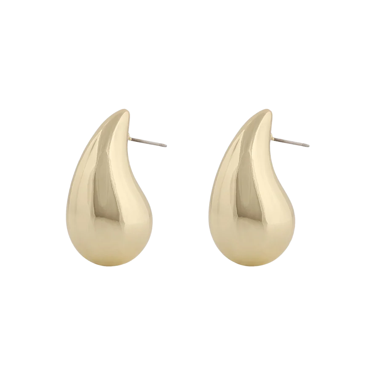 Örhängen av guld eller silverpläterad mässing med droppformad design. Dessa örhängen är 44mm stora och har en lätt design som gör de bekväma att bära hela dagen.