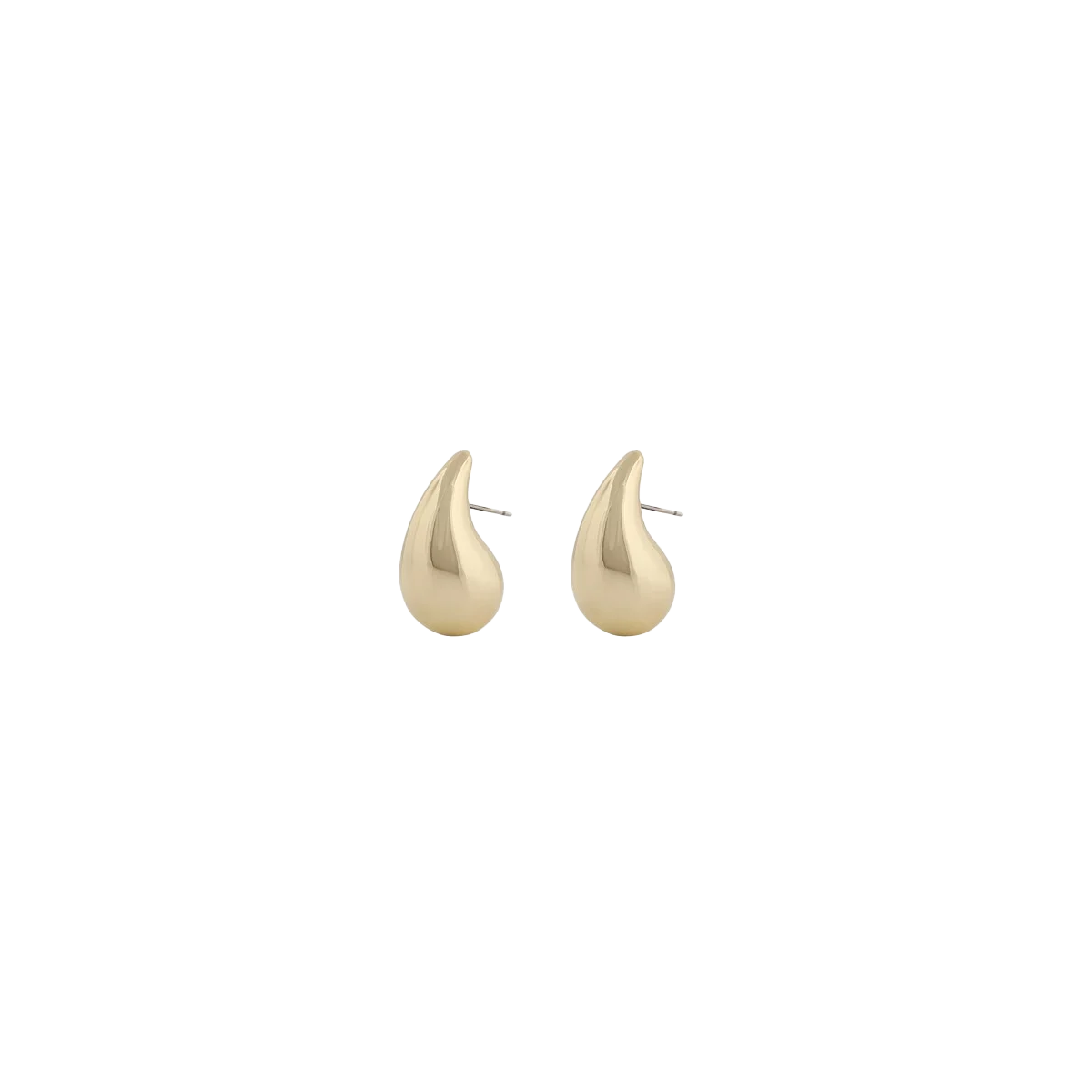 Droppformade örhängen med en blank yta. Tillverkade i mässing med en 14k guld- eller sterling silverplätering.