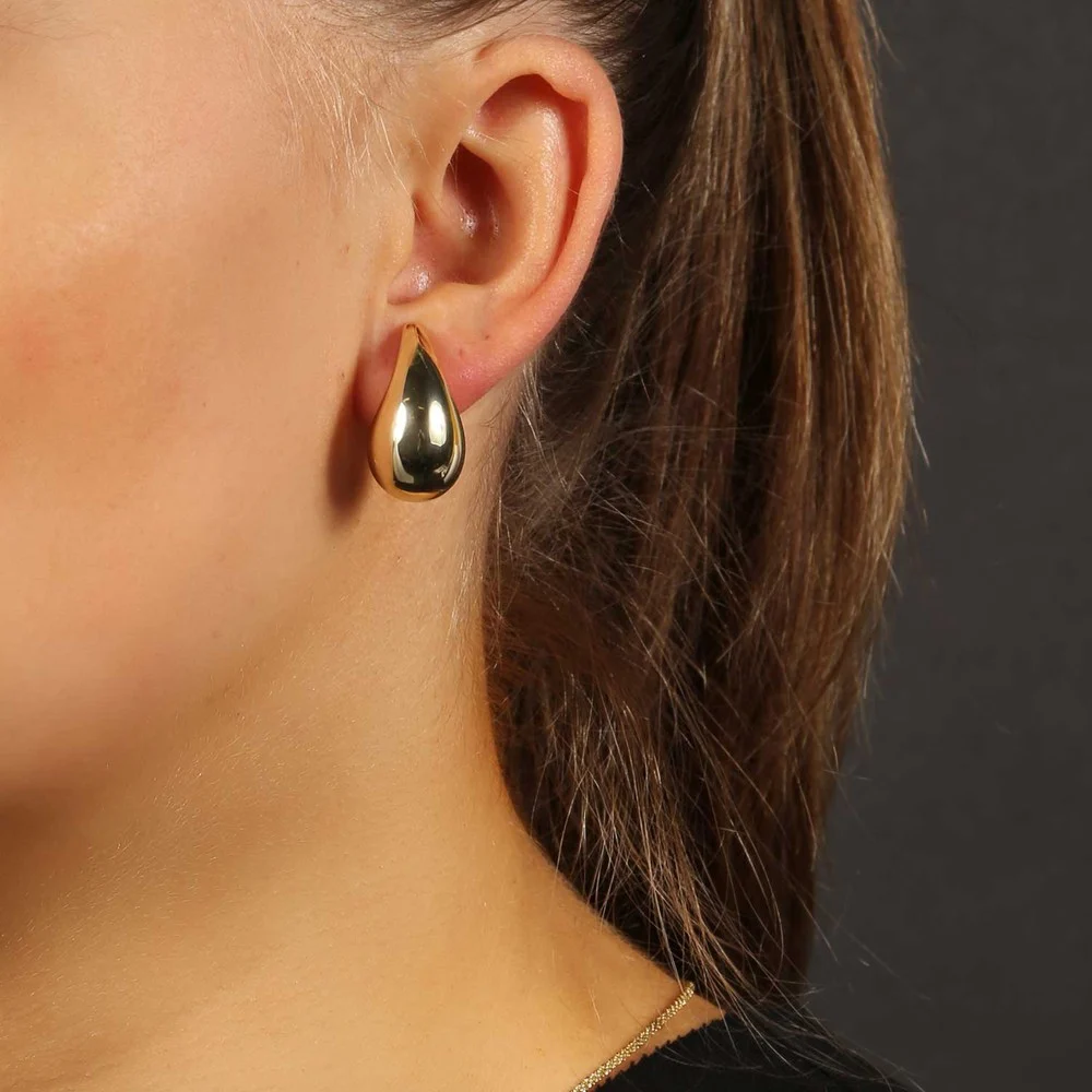 Droppformade örhängen med en blank yta. Tillverkade i mässing med en 14k guld- eller sterling silverplätering.