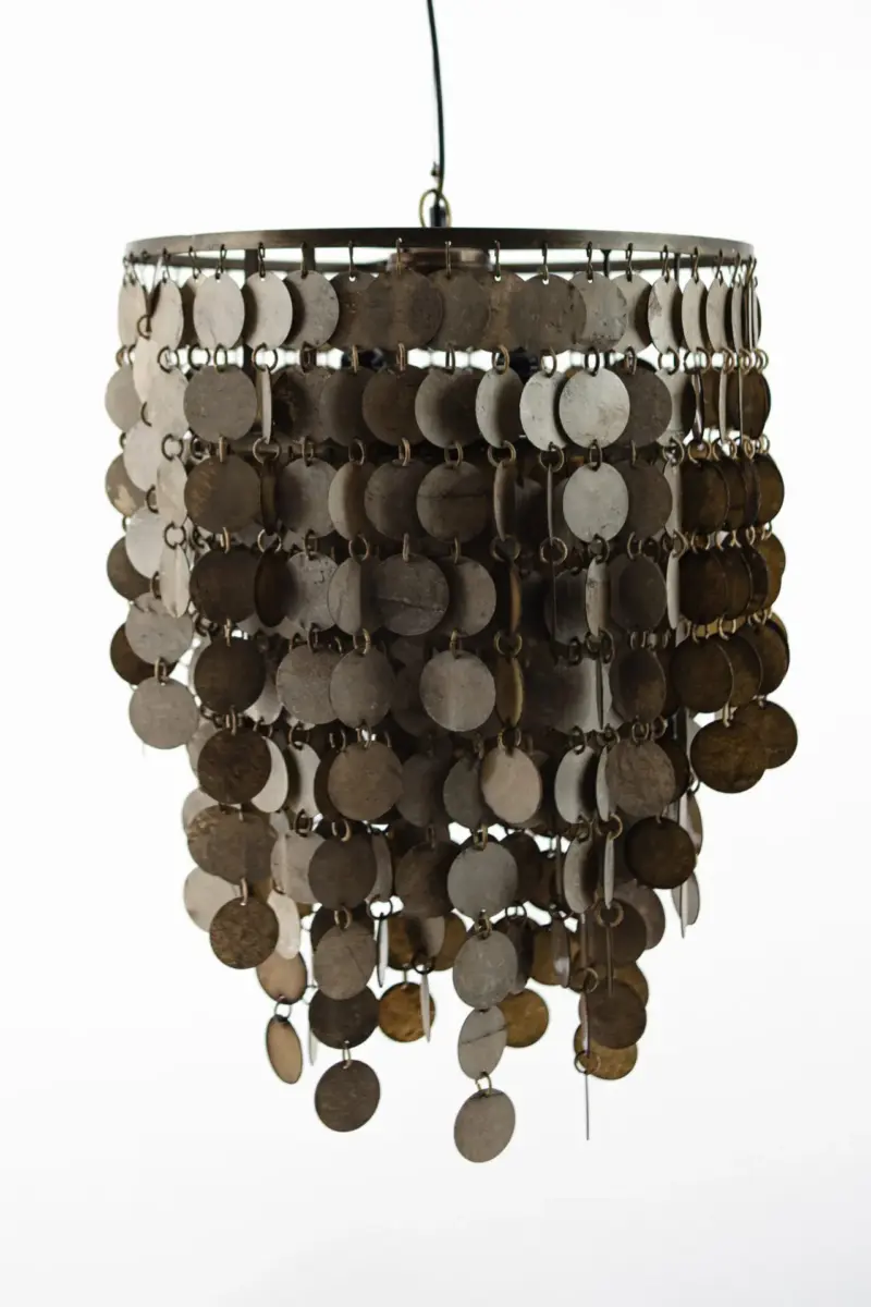 Klassisk taklampa med en lekfull touch, skapad med vår egen unika design. De eleganta hängena i marmorfaner ger lampan en exklusiv känsla och monteras varsamt för hand.